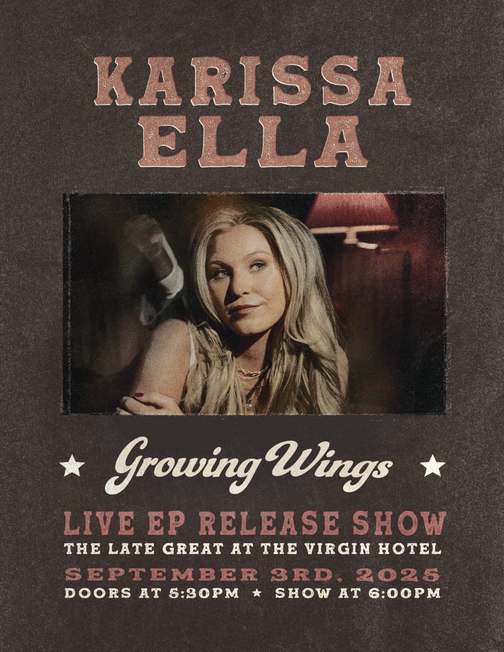 With her Growing Wings EP out now across all platforms, Karissa continues to prove why she’s one to watch in country music. The project blends nostalgic storytelling with modern flair, featuring seven dynamic tracks that showcase her songwriting versatility and powerhouse vocals.